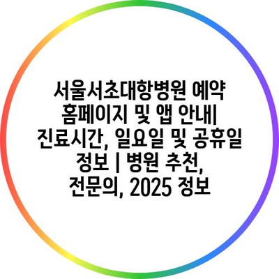 서울서초대항병원 예약 홈페이지 및 앱 안내| 진료시간, 일요일 및 공휴일 정보 | 병원 추천, 전문의, 2025 정보