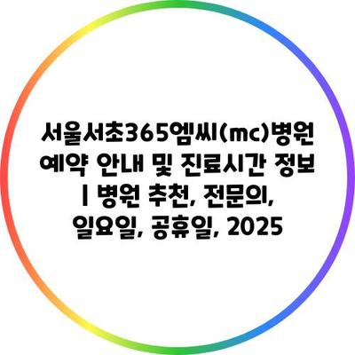 서울서초365엠씨(mc)병원 예약 공지 및 진료시간 정보 | 병원 추천, 전연락, 일요일, 공휴일, 2025 에 대해 자주 묻는 질문 TOP 5