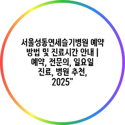 서울성동연세슬기병원 예약 방법 및 진료시간 공지 | 예약, 전연락, 일요일 진료, 병원 추천, 2025″ 에 대해 자주 묻는 질문 TOP 5