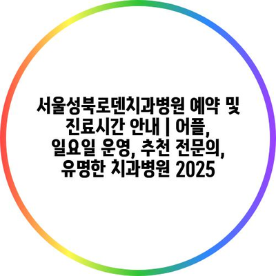 서울성북로덴치과병원 예약 및 진료시간 공지 | 어플, 일요일 운영, 추천 전연락, 유명한 치과병원 2025 에 대해 자주 묻는 질문 TOP 5