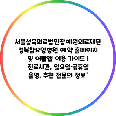 서울성북의료법인참예원의료재단 성북참요양병원 예약 홈페이지 및 어플앱 이용 가이드 | 진료시간, 일요일·공휴일 운영, 추천 전문의 정보”