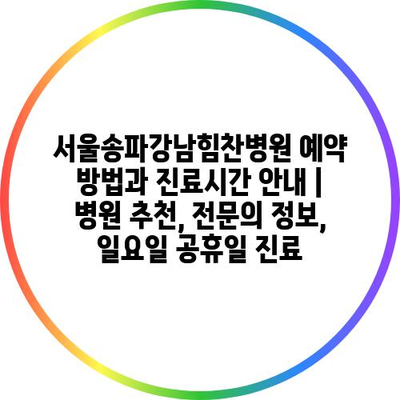 ✅ 서울송파강남힘찬병원의 진료 시간과 예약 방법을 자세히 알아보세요.
