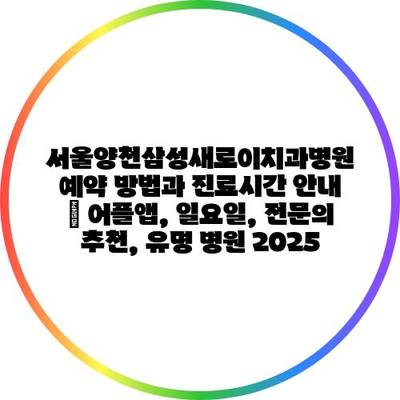 서울양천삼성새로이치과병원 예약 방법과 진료시간 공지 | 어플앱, 일요일, 전연락 추천, 유명 병원 2025에 대해 자주 묻는 질문 TOP 5