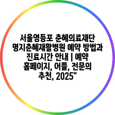 서울영등포 춘혜의료재단 명지춘혜재활병원 예약 방법과 진료시간 공지 | 예약 홈페이지, 어플, 전연락 추천, 2025에 대해 자주 묻는 질문 TOP 5
