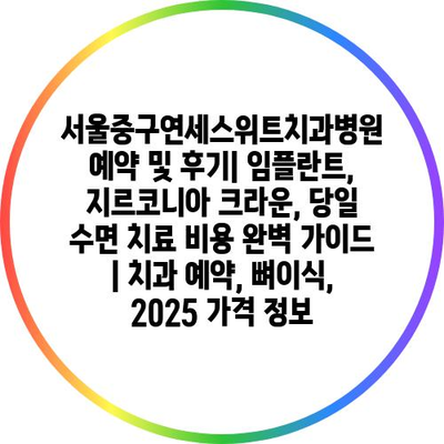 서울중구연세스위트치과병원 예약 및 후기| 임플란트, 지르코니아 크라운, 당일 수면 치료 비용 완벽 설명서 | 치과 예약, 뼈이식, 2025 가격 정보에 대한 내용을 담고 있습니다.
