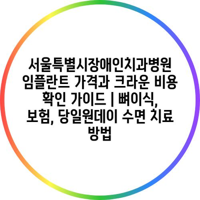 ✅ 서울특별시장애인치과병원의 임플란트 및 크라운 비용을 자세히 알아보세요.