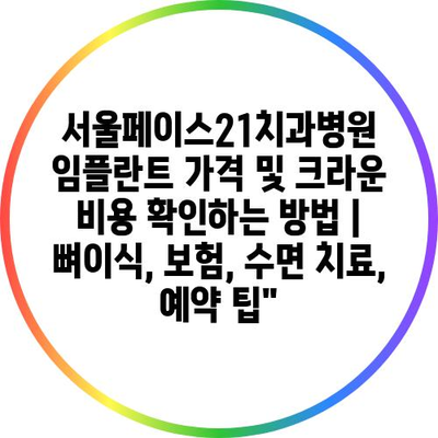 서울페이스21치과병원 임플란트 가격 및 크라운 비용 확인하는 방법 | 뼈이식, 보험, 수면 치료, 예약 팁”