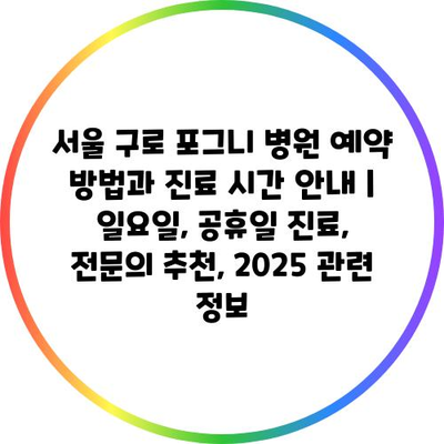 서울 구로 포그니 병원 예약 방법과 진료 시간 공지 | 일요일, 공휴일 진료, 전연락 추천, 2025 관련 정보에 대해 자주 묻는 질문 TOP 5