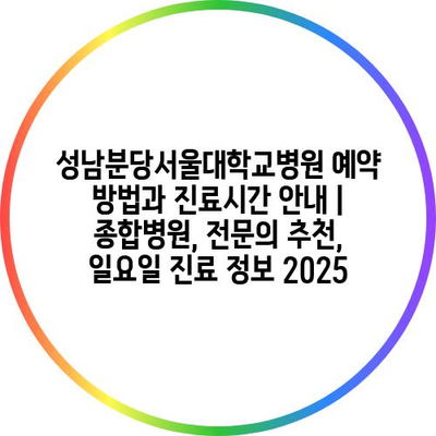 성남분당서울대학교병원 예약 방법과 진료시간 안내 | 종합병원, 전문의 추천, 일요일 진료 정보 2025