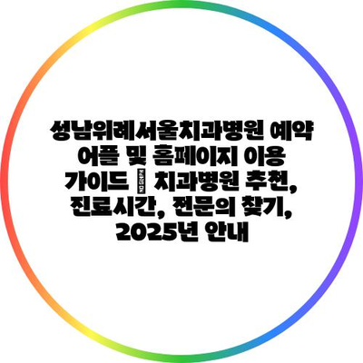 성남위례서울치과병원 예약 어플 및 홈페이지 이용 설명서 | 치과병원 추천, 진료시간, 전연락 찾기, 2025년 공지 에 대해 자주 묻는 질문 TOP 5