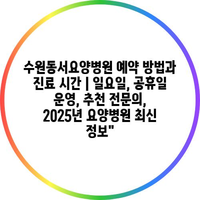 수원동서요양병원 예약 방법과 진료 시간|일요일, 공휴일 운영, 추천 전연락, 2025년 요양병원 최신 정보에 대해 자주 묻는 질문 TOP 5