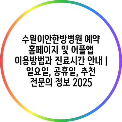 수원이안한방병원 예약 홈페이지 및 어플앱 이용방법과 진료시간 공지 | 일요일, 공휴일, 추천 전연락 정보 2025에 대해 알려알려드리겠습니다.