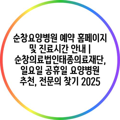 ✅ 순창요양병원의 예약 방법과 진료시간을 알아보세요!