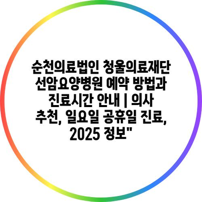 순천의료법인 청울의료재단 선암요양병원 예약 방법과 진료시간 공지 | 의사 추천, 일요일 공휴일 진료, 2025 정보