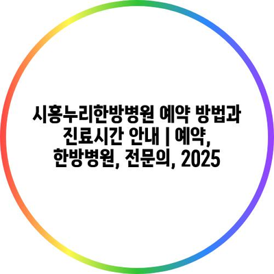 시흥누리한방병원 예약 방법과 진료시간 안내 | 예약, 한방병원, 전문의, 2025