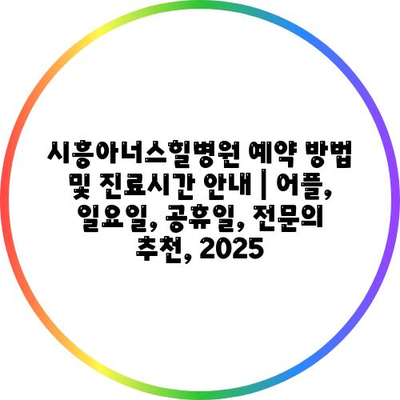 ✅ 시흥아너스힐병원 예약 방법과 진료시간을 알아보세요!