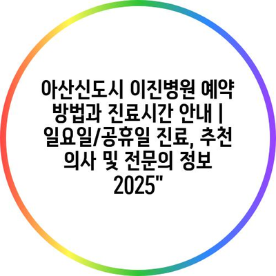 아산신도시 이진병원 예약 방법과 진료시간 공지 | 일요일/공휴일 진료, 추천 의사 및 전연락 정보 2025″ 에 대해 자주 묻는 질문 TOP 5