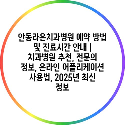 안동라온치과병원 예약 방법 및 진료시간 공지 | 치과병원 추천, 전연락 정보, 온라인 어플리케이션 사용법, 2025년 최신 정보 에 대해 자주 묻는 질문 TOP 5