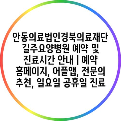 안동의료법인경북의료재단 길주요양병원 예약 및 진료시간 공지 | 예약 홈페이지, 어플앱, 전연락 추천, 일요일 공휴일 진료 에 대해 자주 묻는 질문 TOP 5