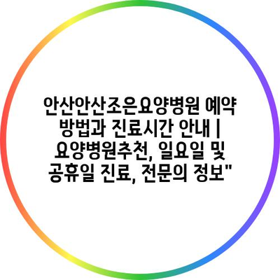 ✅ 안산조은요양병원의 예약 방법과 진료시간을 지금 바로 알아보세요!
