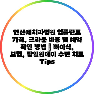안산예치과병원 임플란트 가격, 크라운 비용 및 예약 확인 방법 | 뼈이식, 보험, 당일원데이 수면 치료 Tips