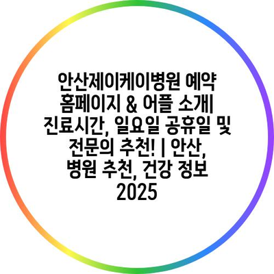 안산제이케이병원 예약 홈페이지 & 어플 소개| 진료시간, 일요일 공휴일 및 전연락 추천! | 안산, 병원 추천, 건강 정보 2025 에 대해 자주 묻는 질문 TOP 5