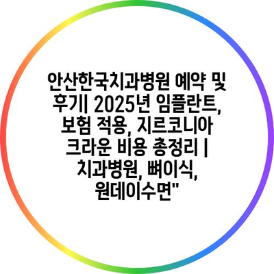 안산한국치과병원 예약 및 후기| 2025년 임플란트, 보험 적용, 지르코니아 크라운 비용 총정리 | 치과병원, 뼈이식, 원데이수면”