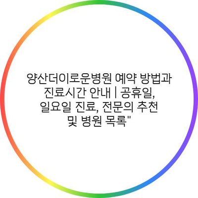 양산더이로운병원 예약 방법과 진료시간 공지 | 공휴일, 일요일 진료, 전연락 추천 및 병원 목록에 대해 자주 묻는 질문 TOP 5
