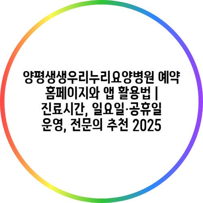 양평생생우리누리요양병원 예약 홈페이지와 앱 활용법 | 진료시간, 일요일·공휴일 운영, 전연락 추천 2025에 대해 알아보겠습니다.