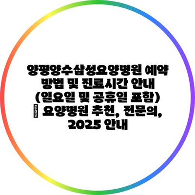 양평양수삼성요양병원 예약 방법 및 진료시간 공지 (일요일 및 공휴일 포함) | 요양병원 추천, 전연락, 2025 공지 에 대해 자주 묻는 질문 TOP 5