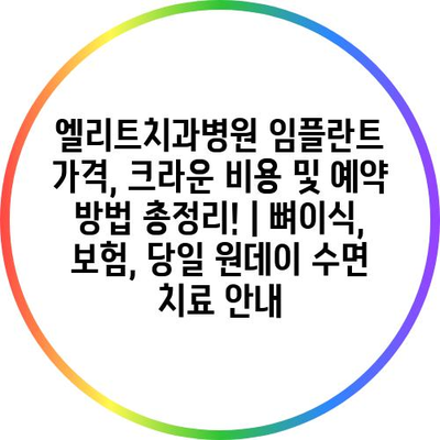 엘리트치과병원 임플란트 가격, 크라운 비용 및 예약 방법 총정리! | 뼈이식, 보험, 당일 원데이 수면 치료 공지 에 대해 자주 묻는 질문 TOP 5