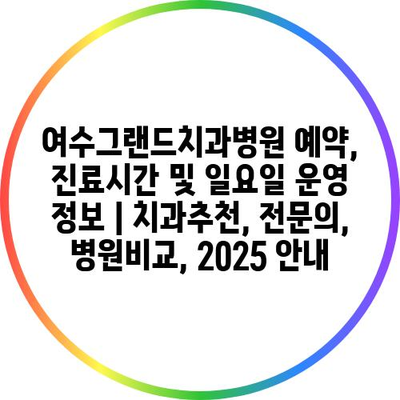 여수그랜드치과병원 예약, 진료시간 및 일요일 운영 정보 | 치과추천, 전연락, 병원비교, 2025 공지 에 대해 자주 묻는 질문 TOP 5