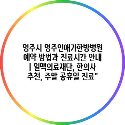 영주시 영주인애가한방병원 예약 방법과 진료시간 공지 | 일맥의료재단, 한의사 추천, 주말 공휴일 진료”에 대해 자주 묻는 질문 TOP 5