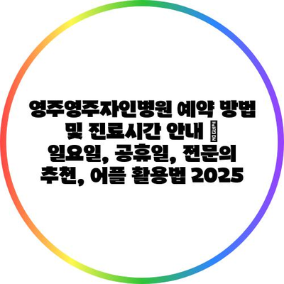 영주영주자인병원 예약 방법 및 진료시간 공지 | 일요일, 공휴일, 전연락 추천, 어플 활용법 2025에 대해 알아보겠습니다.