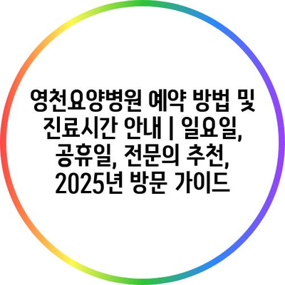 영천요양병원 예약 방법 및 진료시간 공지 | 일요일, 공휴일, 전연락 추천, 2025년 방문 설명서 에 대해 자주 묻는 질문 TOP 5