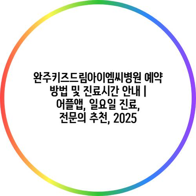 완주키즈드림아이엠씨병원 예약 방법 및 진료시간 공지 | 어플앱, 일요일 진료, 전연락 추천, 2025 에 대해 자주 묻는 질문 TOP 5