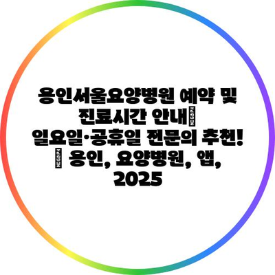 용인서울요양병원 예약 및 진료시간 공지| 일요일·공휴일 전연락 추천! | 용인, 요양병원, 앱, 2025 에 대해 자주 묻는 질문 TOP 5