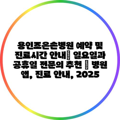 용인조은손병원 예약 및 진료시간 공지| 일요일과 공휴일 전연락 추천 | 병원 앱, 진료 공지, 2025 에 대해 자주 묻는 질문 TOP 5