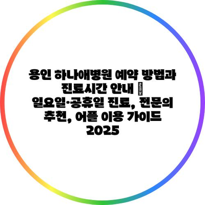 용인 하나애병원 예약 방법과 진료시간 공지 | 일요일·공휴일 진료, 전연락 추천, 어플 이용 설명서 2025에 대해 알아보겠습니다.