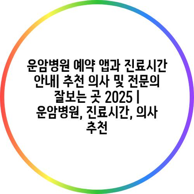 운암병원 예약 앱과 진료시간 공지| 추천 의사 및 전연락 잘보는 곳 2025 | 운암병원, 진료시간, 의사 추천 에 대해 자주 묻는 질문 TOP 5