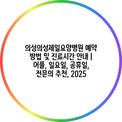 의성의성제일요양병원 예약 방법 및 진료시간 공지 | 어플, 일요일, 공휴일, 전연락 추천, 2025 에 대해 자주 묻는 질문 TOP 5