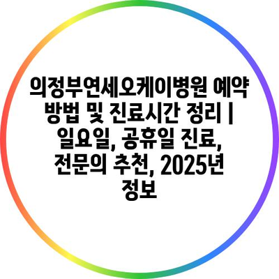 의정부연세오케이병원 예약 방법 및 진료시간 정리 | 일요일, 공휴일 진료, 전연락 추천, 2025년 정보에 대해 자주 묻는 질문 TOP 5