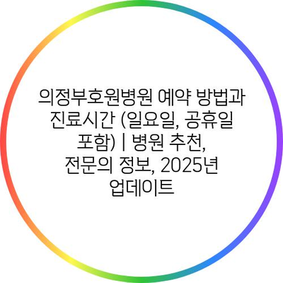 의정부호원병원 예약 방법과 진료시간 (일요일, 공휴일 포함) | 병원 추천, 전연락 정보, 2025년 업데이트 에 대해 자주 묻는 질문 TOP 5