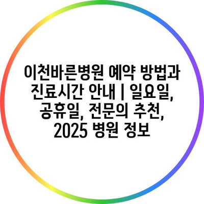 이천바른병원 예약 방법과 진료시간 공지 | 일요일, 공휴일, 전연락 추천, 2025 병원 정보 에 대해 자주 묻는 질문 TOP 5
