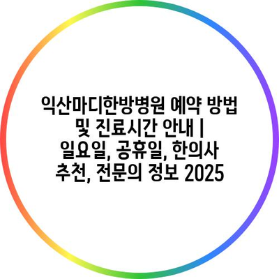 익산마디한방병원은 다양한 한방 치료를 제공하는 곳으로, 예약은 전화나 온라인을 통해 간편하게 할 수 있습니다.
