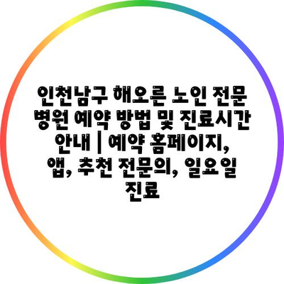 인천남구 해오른 노인 전문 병원 예약 방법 및 진료시간 공지 | 예약 홈페이지, 앱, 추천 전연락, 일요일 진료 에 대해 자주 묻는 질문 TOP 5