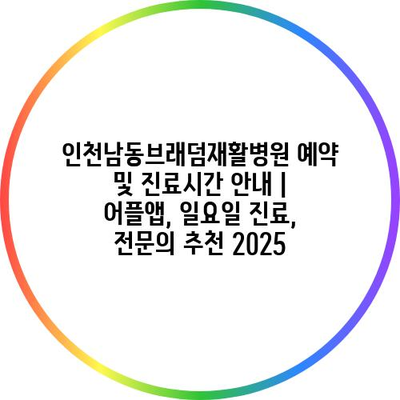 인천남동브래덤재활병원 예약 및 진료시간 공지 | 어플앱, 일요일 진료, 전연락 추천 2025에 대해 자주 묻는 질문 TOP 5