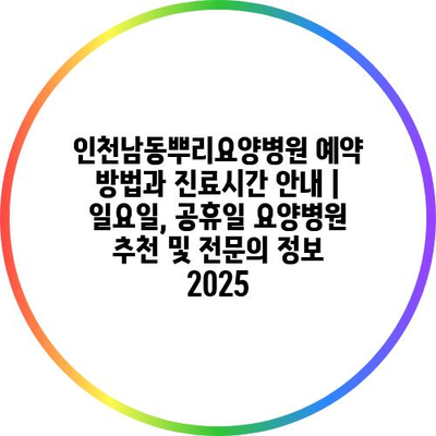 인천남동뿌리요양병원 예약 방법과 진료시간 공지 | 일요일, 공휴일 요양병원 추천 및 전연락 정보 2025 에 대해 자주 묻는 질문 TOP 5
