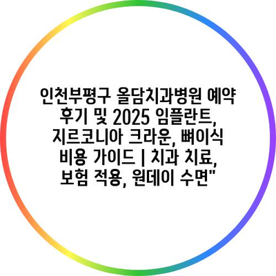 인천부평구 올담치과병원 예약 후기 및 2025 임플란트, 지르코니아 크라운, 뼈이식 비용 설명서 | 치과 치료, 보험 적용, 원데이 수면” 에 대해 자주 묻는 질문 TOP 5