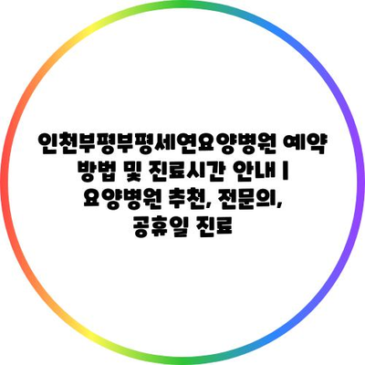✅ 인천부평부평세연요양병원의 예약 방법과 진료 시간을 자세히 알아보세요!